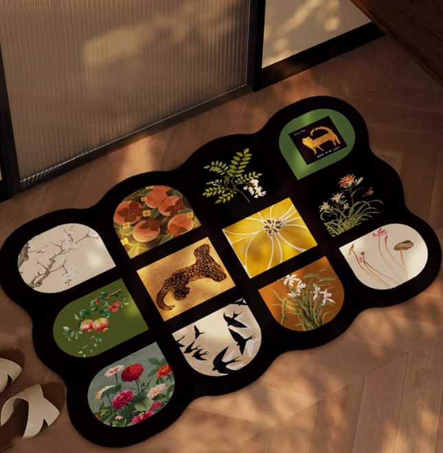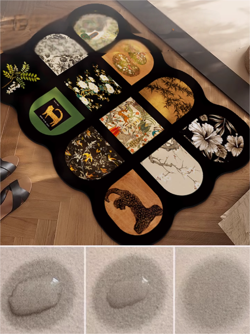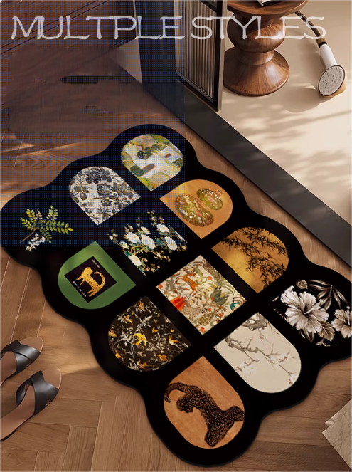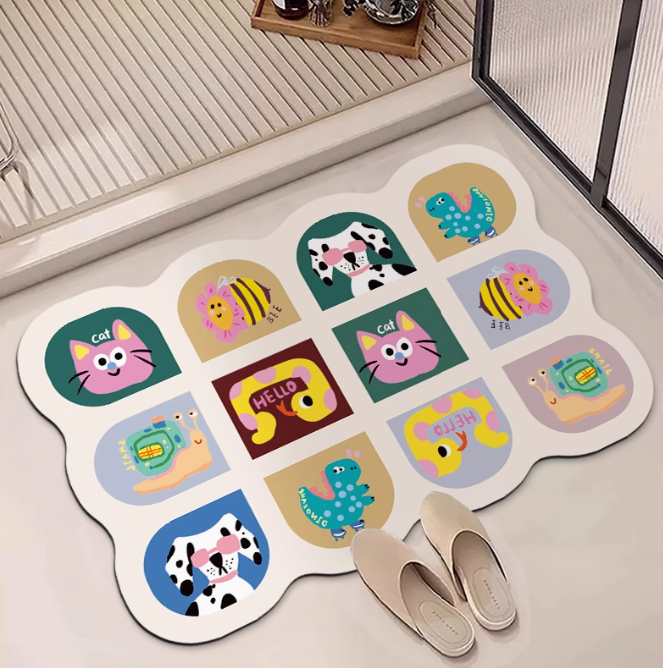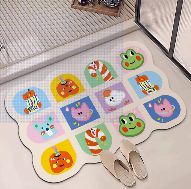 Diatom mud material, quick drying with water absorption, does not rub feet after bathing, anti slip design,double sided anti slip design, easy to clean, environmentally friendly material, multiple pattern choices, adding fun to home decor.